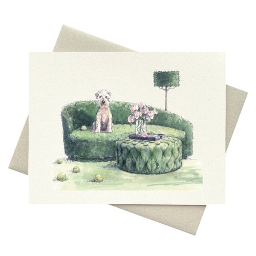 Our Wheaten Terrier design is based on a sweetheart, man about town named Winston. Complete with tennis balls and a bouquet of peonies Winston is sure to bring a smile to your favorite Wheaten lover. For ordering details click here.